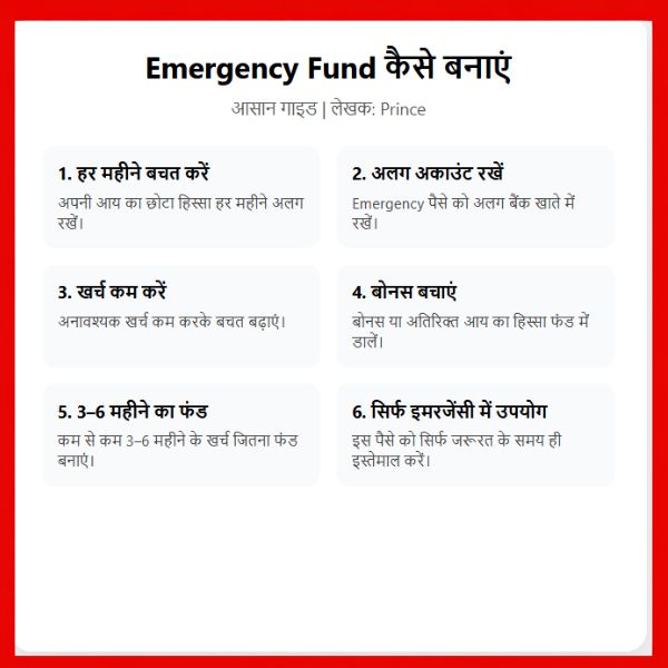 नमस्कार दोस्तों आज मैं आपको बताऊँगा कि “Emergency Fund कैसे बनाएं : आसान तरीका “तो आर्टिकल को अंत तक पढे ओर जाने ,आजकल जिंदगी में कब क्या खर्च आ जाए, इसका कोई भरोसा नहीं होता। कभी अचानक तबीयत खराब हो जाती है, कभी घर में कोई जरूरी काम आ जाता है, और कभी नौकरी में भी परेशानी आ सकती है। ऐसे समय में अगर हमारे पास कुछ बचत हो तो स्थिति संभालना आसान हो जाता है।