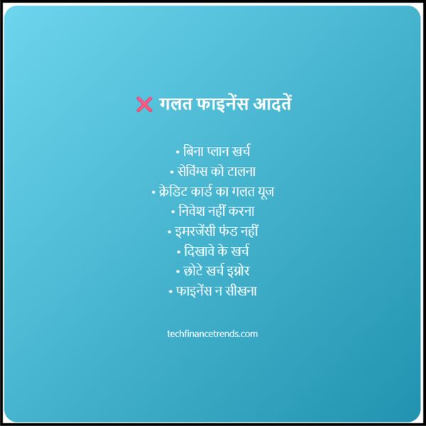 नमस्कार दोस्तों आज मैं आपको बताऊँगा की “गलत फाइनेंस आदतें जो आपको गरीब बना सकती हैं : आज ही सुधारें “तो आर्टिकल को अंत पढ़ें ओर जाने कई बार हम सोचते हैं कि “पैसा कम तो रहे हैं, फिर भी बच क्यों नहीं रहा?”